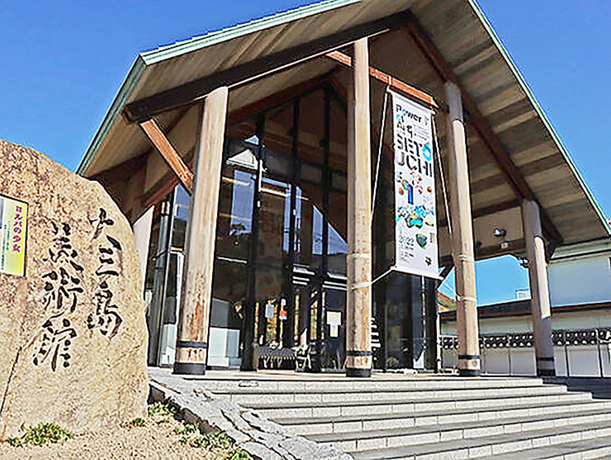 「大三島美術館」は、しまなみ海道のほぼ中央に位置し、白壁の美しい建物が印象的なこの美術館は、瀬戸内しまなみ海道「大三島IC」から約15分、大山祇神社の隣という好ロケーション!