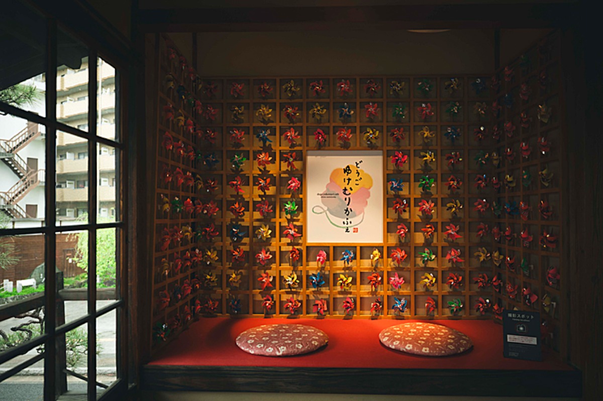 イートインスペースの一角にカラフルな風車に囲まれたフォトスポットも