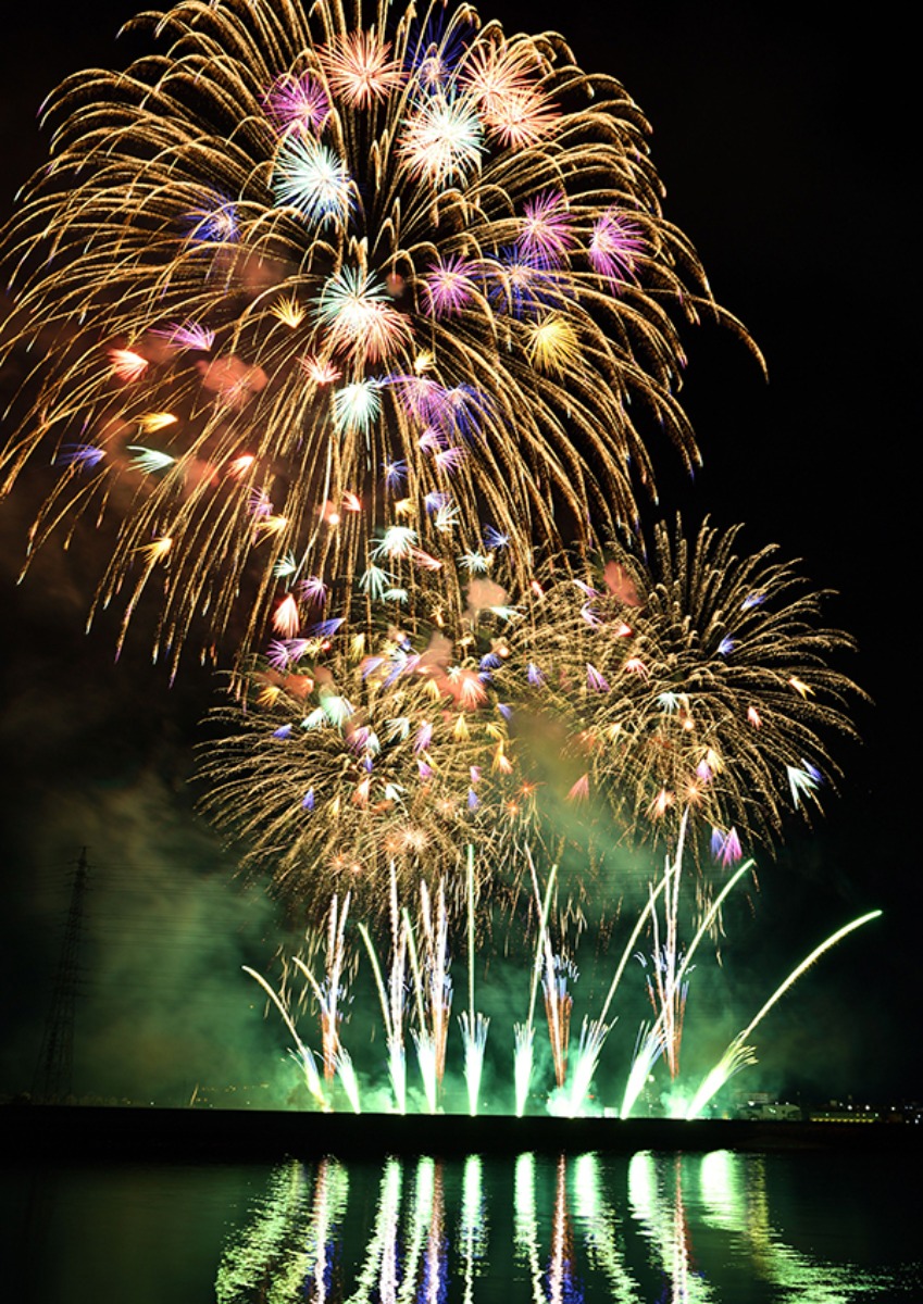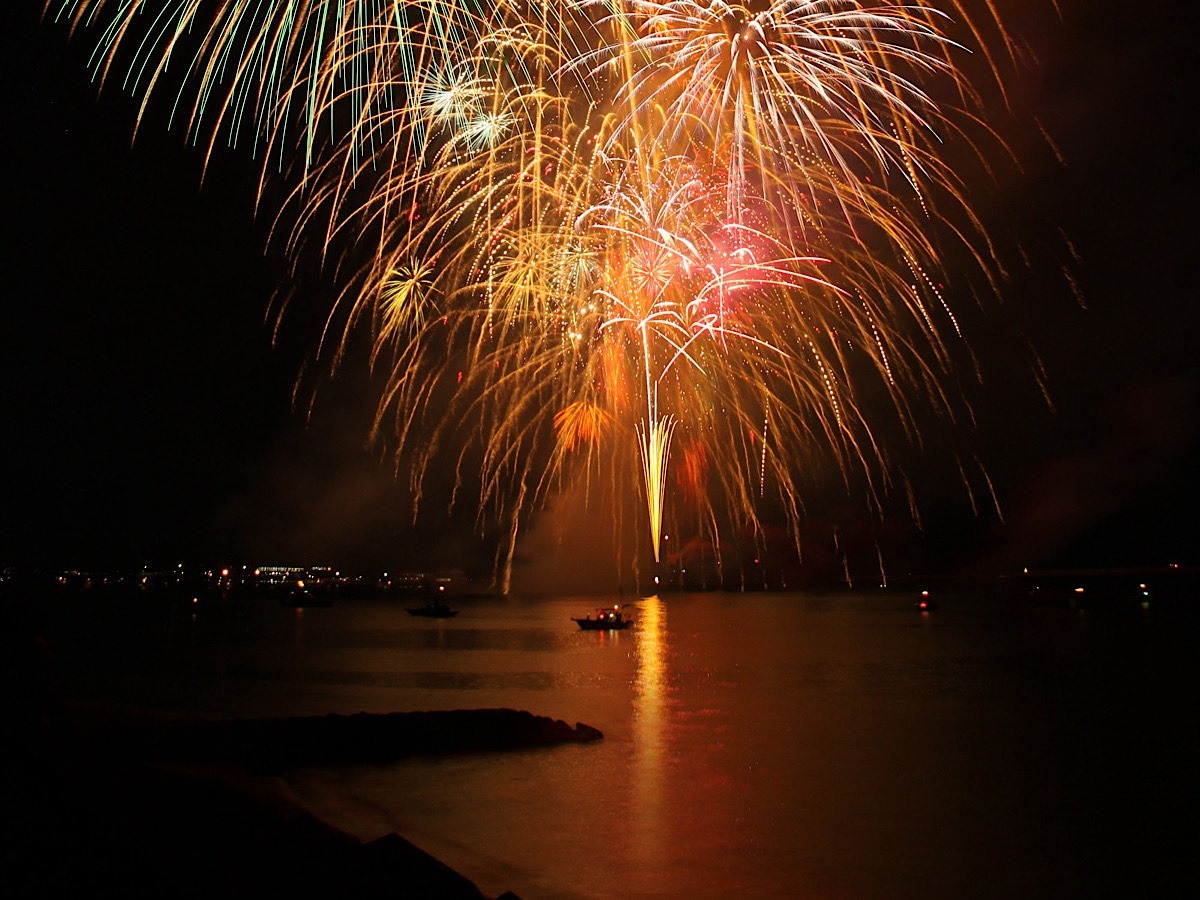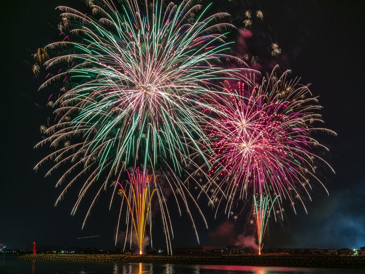 夜空に咲き誇る大輪の華と、海面に反射する光のコントラストを楽しめるのが魅力です。