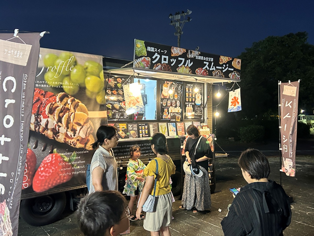 またその他にも、鯛カツバーガーや蜂蜜からあげ、いか焼きにわたあめ、かき氷に牛くしなど、夏まつりらしさ満載の屋台グルメやキッチンカーも盛りだくさん。