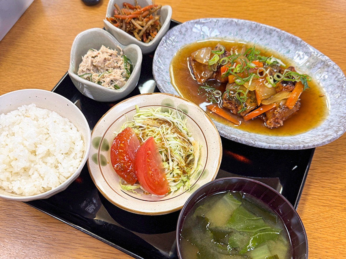 新しく始まったと思えないほど、魅力的なメニューがずらり……!今回は、店主さんおすすめの本日の日替わり(750円)をいただきました。メインとご飯と汁物、副菜がセットになったバランスのいいランチとなっています。