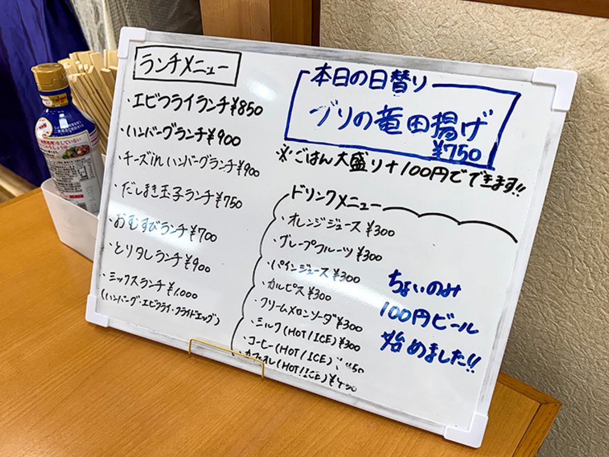 取材時のメインは、カラッと揚がった大きなブリの竜田揚げが3つも……!ずしっと身が詰まっていてお箸で持ち上げるのも一苦労。なんと、居酒屋ゆずで取り扱っているお魚は、全て知り合いの方が釣ったものを鮮度の高いうちに捌き、お客さんにお出ししているのだそうですよ♪お魚ランチに出会えたらラッキー♪迷わず注文してみてくださいね。