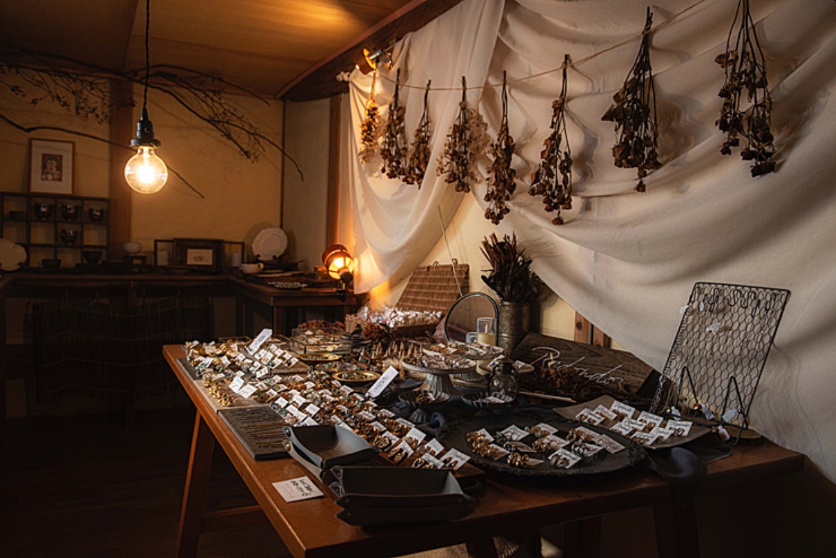 2階スペースでは、アクセサリーやこだわりの器など雑貨の販売も。ぜひ覗いてみて