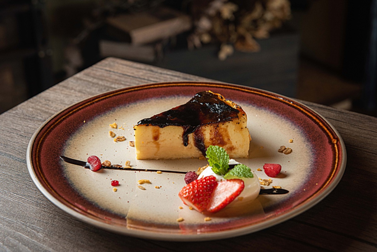 ひと口食べればやみつきに。自家製バスクチーズケーキを直前にキャラメリーゼして提供