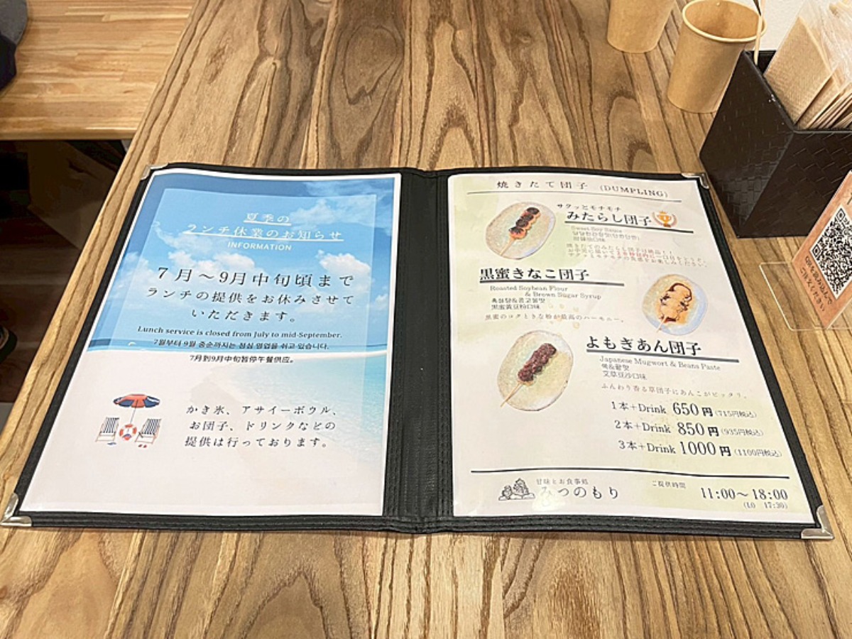 メニューは、今回紹介したかき氷だけではなく、アサイーボウルやお団子も食べられます。お団子は、お店の入り口に設置された網で焼いてくれるので、焼きたてが食べられますよ。