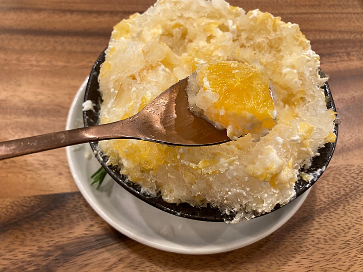 かき氷の中腹には、カットされたみかん果肉がたっぷり隠れていて、最後の一口までフルーティーな味わいが楽しめました。