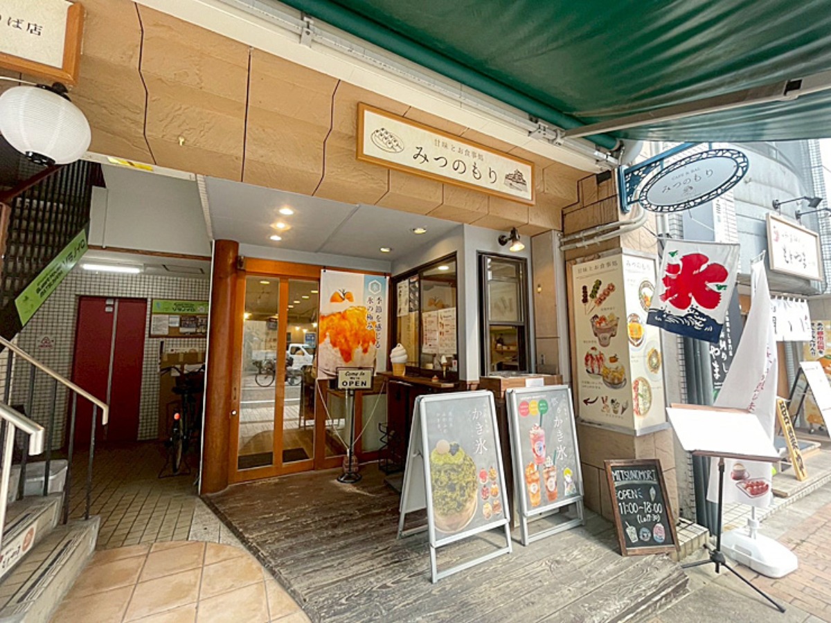 大きなかき氷の写真がインパクトに。暑い夏こそ思わず入りたくなる雰囲気。