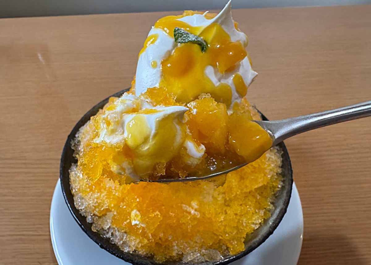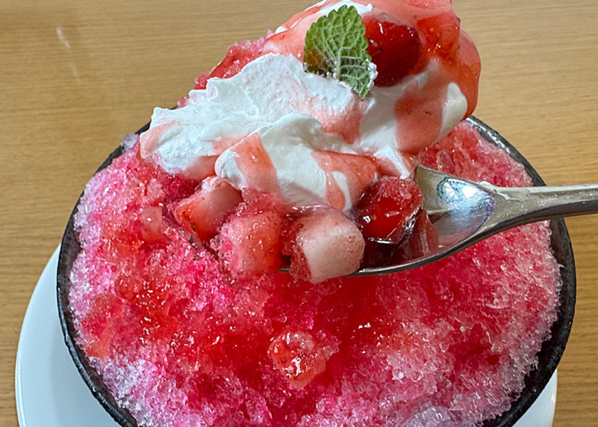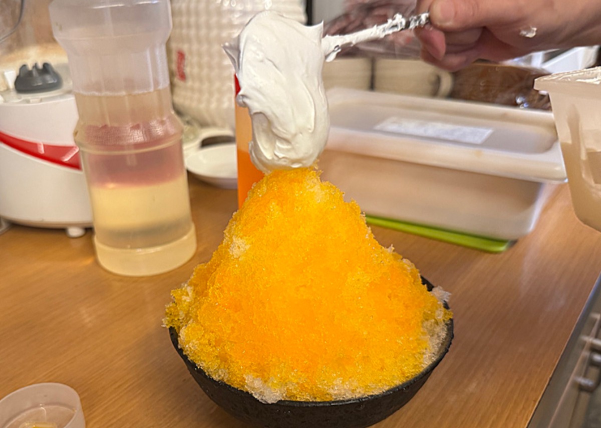 さらに、かき氷の上に乗せられた生クリームは、牛乳でややゆるめてからトッピングされており、氷と一緒に食べやすくなるよう工夫されています。