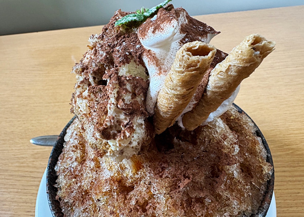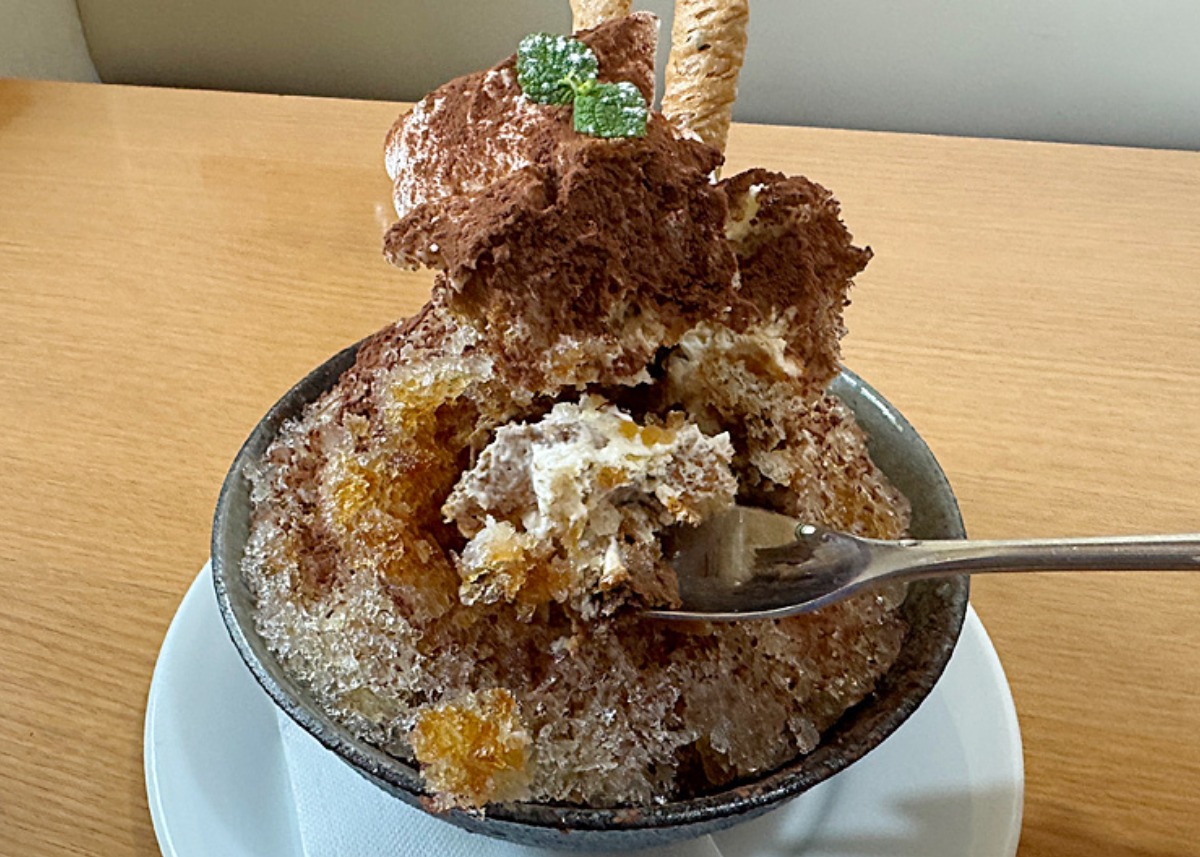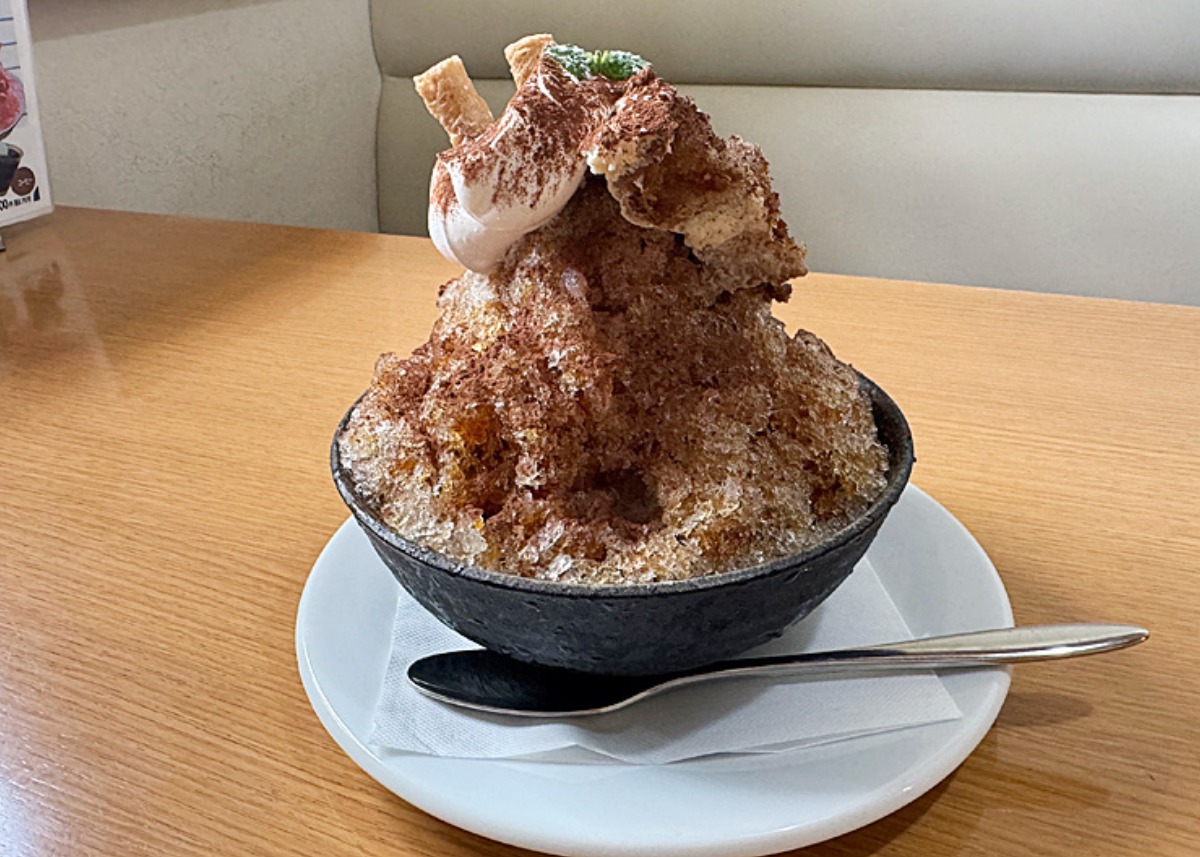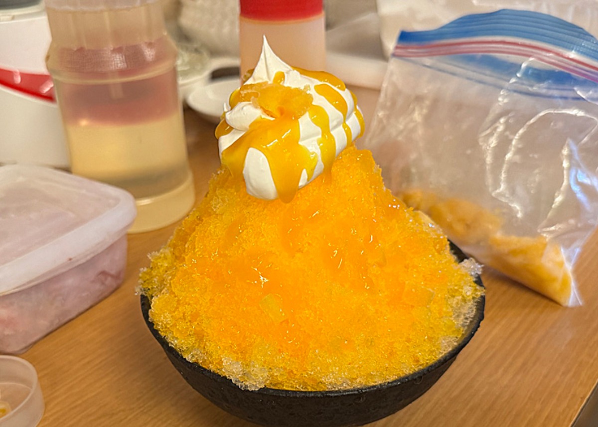 さらに、かき氷の上に乗せられた生クリームは、牛乳でややゆるめてからトッピングされており、氷と一緒に食べやすくなるよう工夫されています。