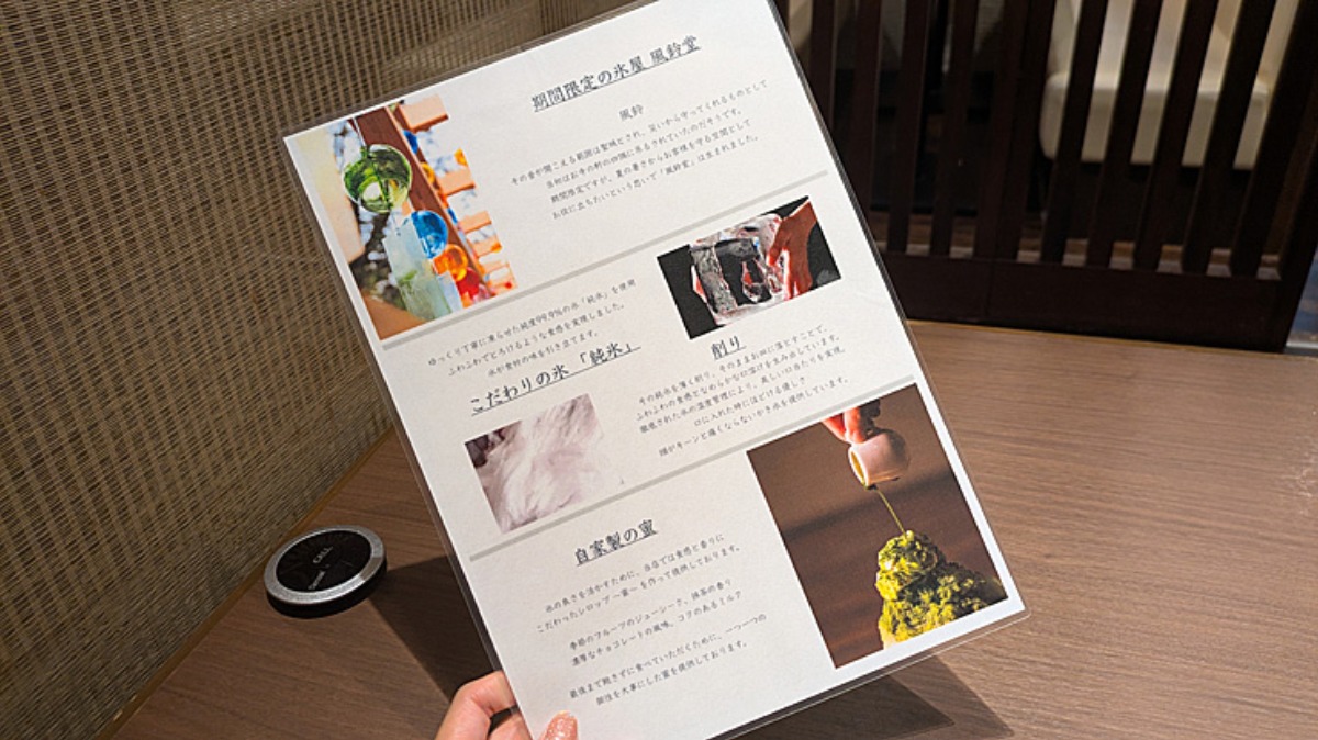 注文したメニューが来るまで、こだわりの氷の説明書をしっかり読んで、待っててくださいね。