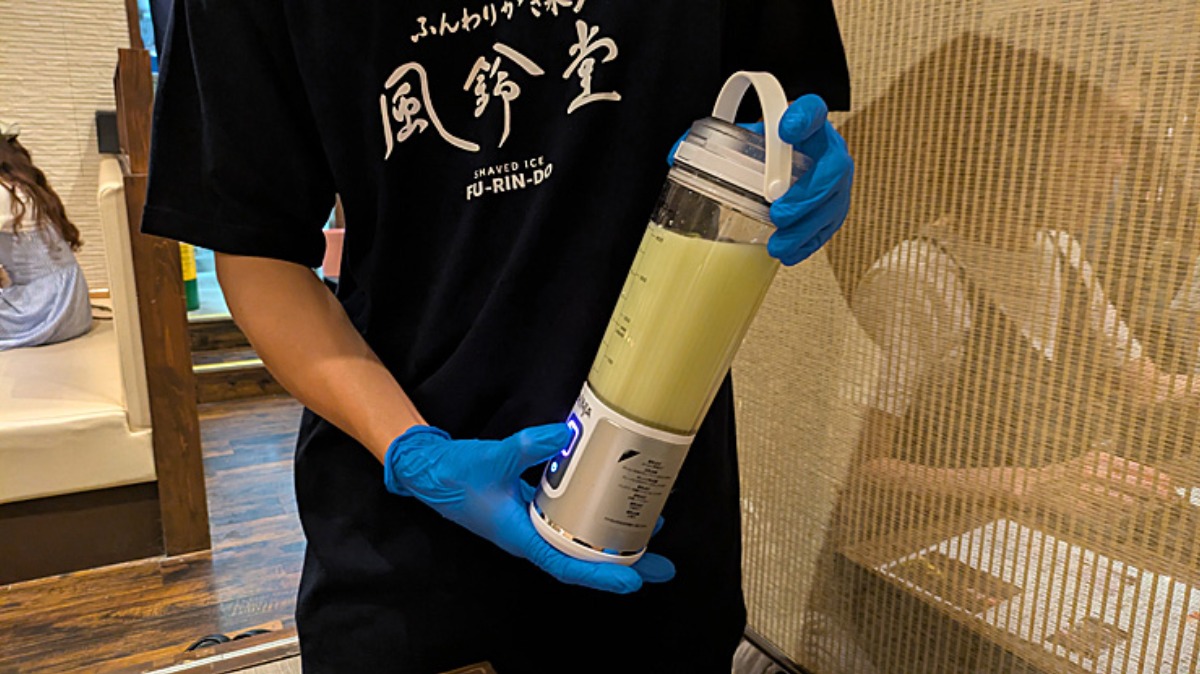 今回私が注文したメニューはメロンを席まで持ってきてくれて、目の前でミキサーにかけてくれます。