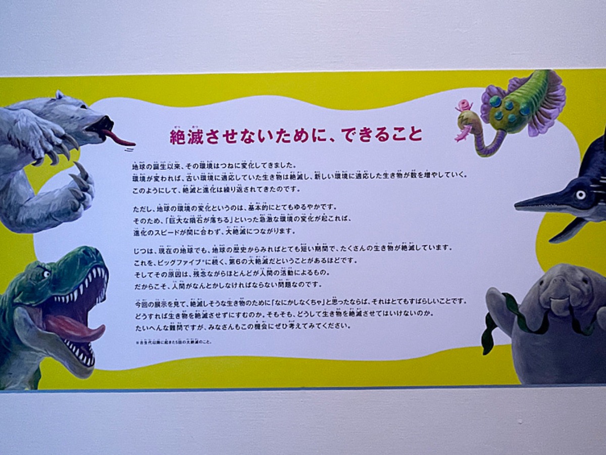 三会場に分かれた展示はどれも見応えがあり、絶滅までの経緯や地球の環境の変化などを学ぶことができました。