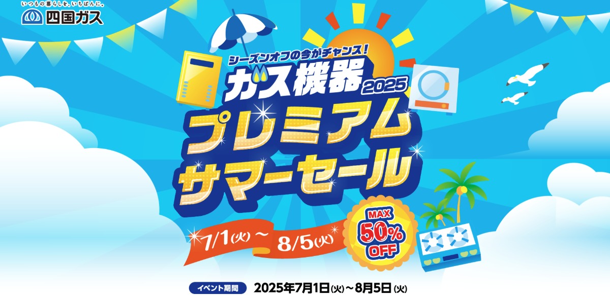 四国ガスでは、「ガス機器 プレミアム サマーセール」を実施。