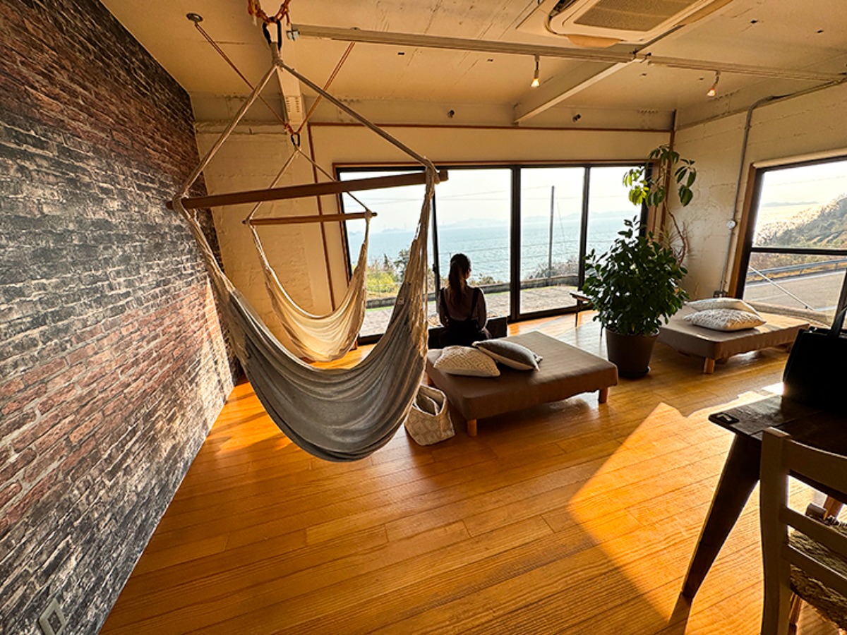 店内の2階席からは、瀬戸内の海や島々、来島海峡大橋が一望できる大パノラマ!