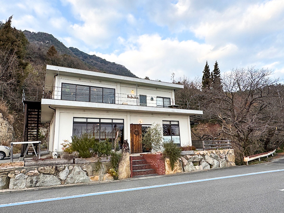 「大三島IC」から車で約25分、“サイクルコース”としても知られる南西部の海岸線沿いを進むと、穏やかな風景の中に静かに佇む【Bubuka~歩歩海~】(ブブカ)に出会います。