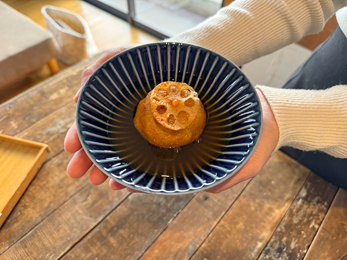 蓮根の風味と海老の旨味が絶妙に融合し、食べるたびに新たな美味しさの発見が楽しめる一品。