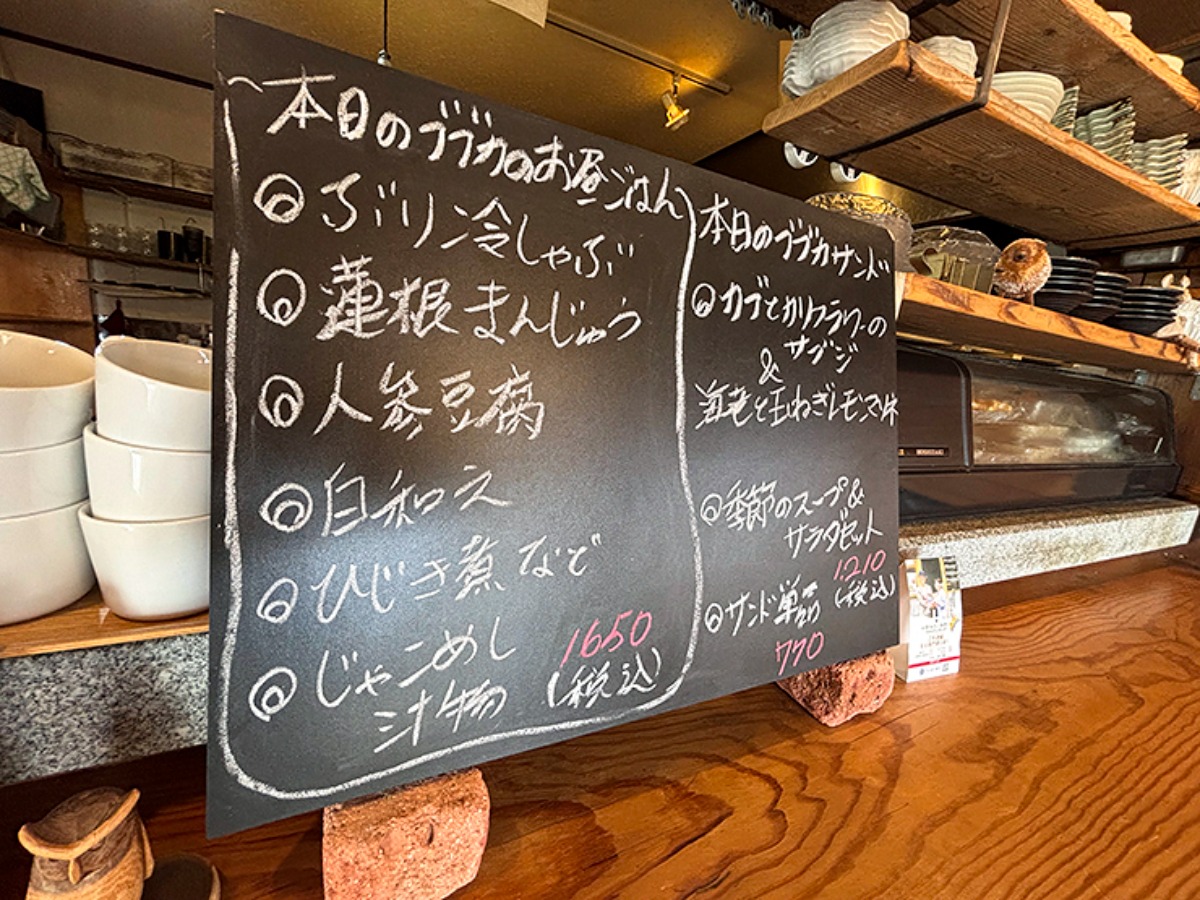 ランチの種類は、瀬戸内の海の幸や旬野菜などを使った和食ベースのランチセット「Bubukaのお昼ごはん」(1,650円)と、自家製酵母パンのサンドと季節のポタージュスープ・サラダがついた「Bubukaサンドセット」(1,210円)から選ぶことができます。