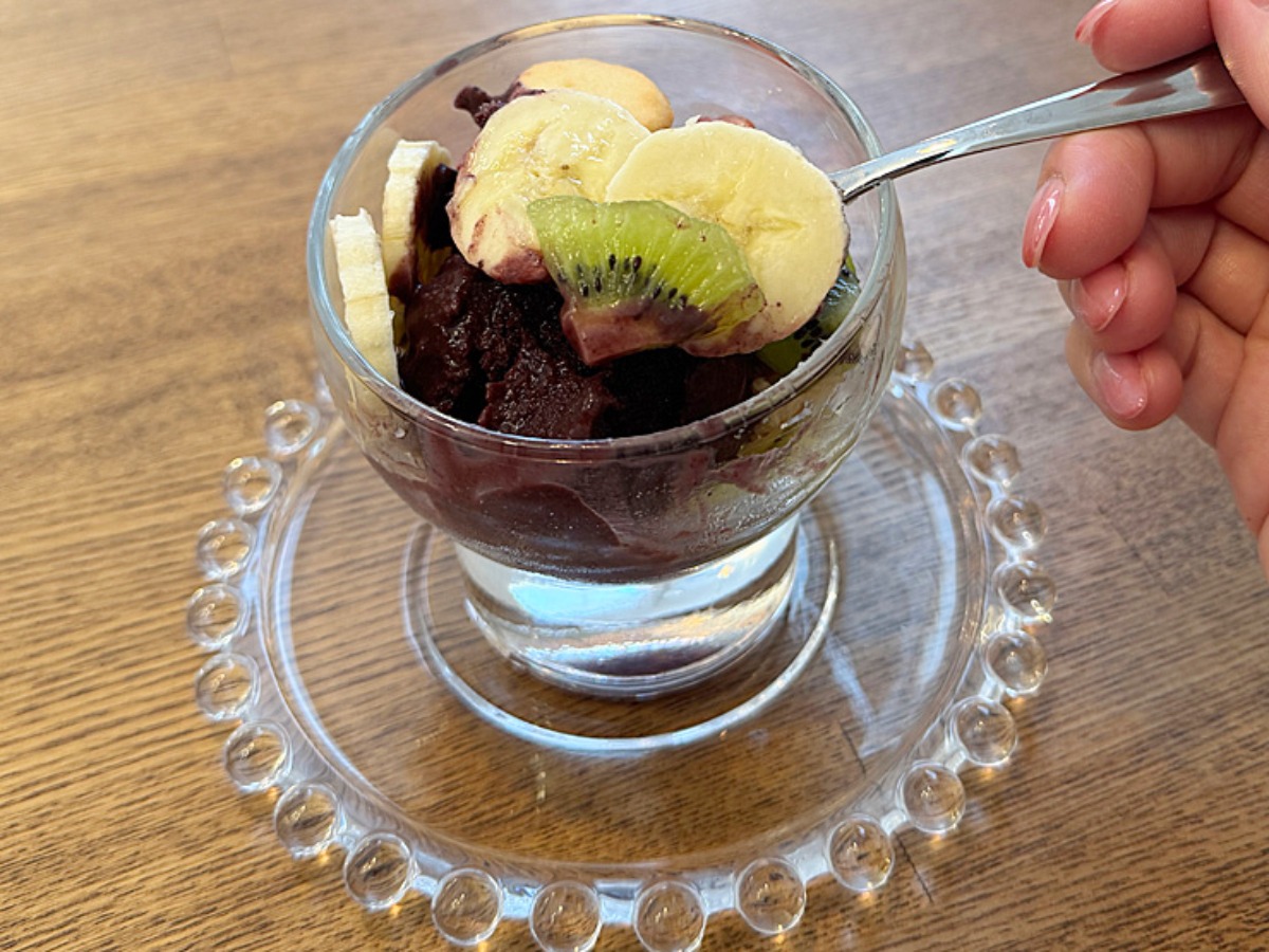 こちらも新しく導入された平日限定メニューのミニアサイーボウル。プラス300円で楽しむことが出来ます。食後にアサイーボウルを楽しみたい。でも大きくて食べきれない。そんな方の為に誕生しました。