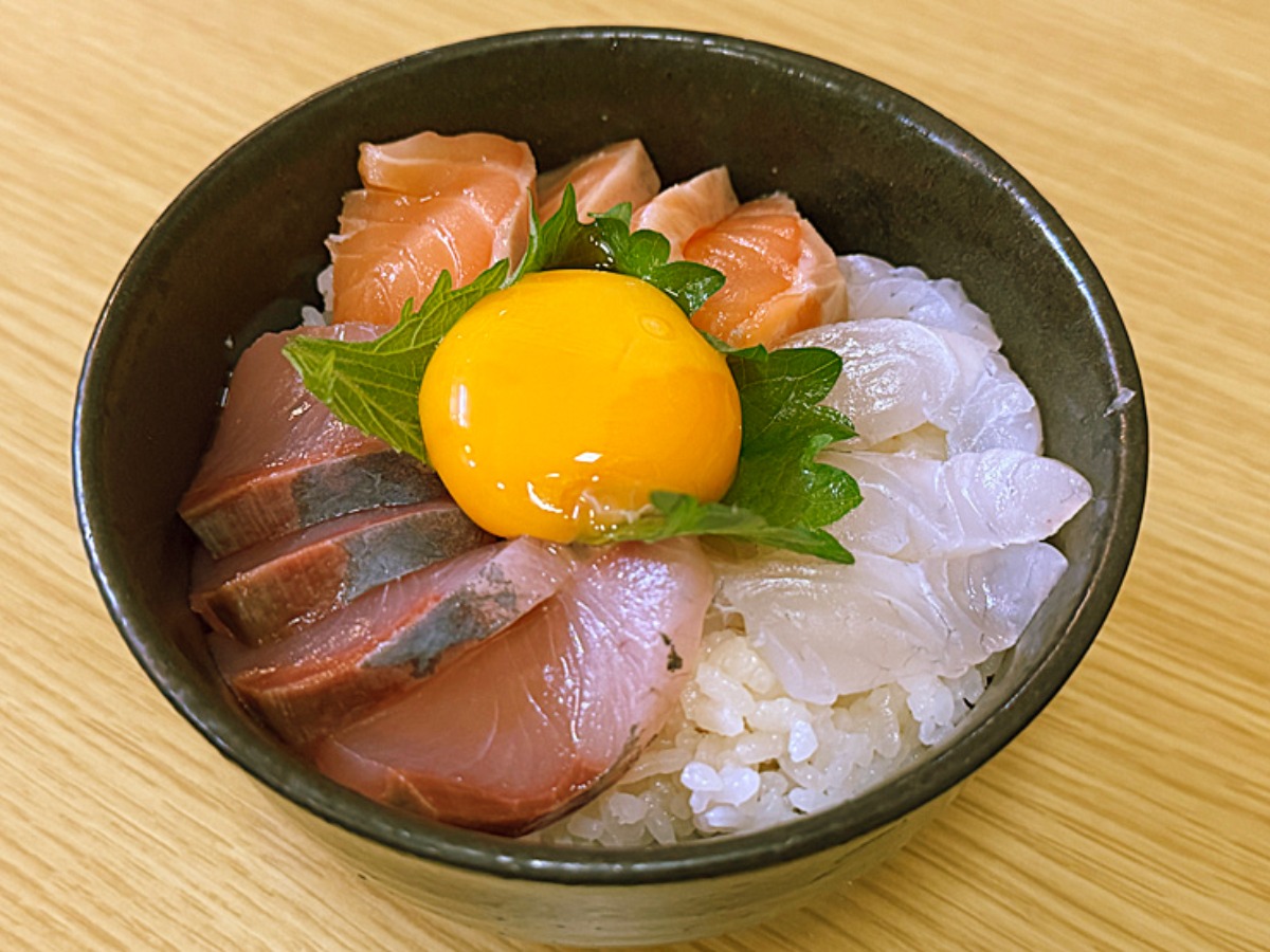 最初に目がいくのは、やはり、この海鮮丼でしょうか。プリッとした黄身を、厚みのあるお刺身が惜しげもなくぐるりと囲みます。店主さんの奥様の実家が営む鮮魚店のお魚を使用しているんだそうですよ♪一口食べた瞬間、新鮮な海の幸が口いっぱいに広がります。甘辛いタレとまろやかな味わいの黄身を絡めると、その美味しさについ頬が緩みます。