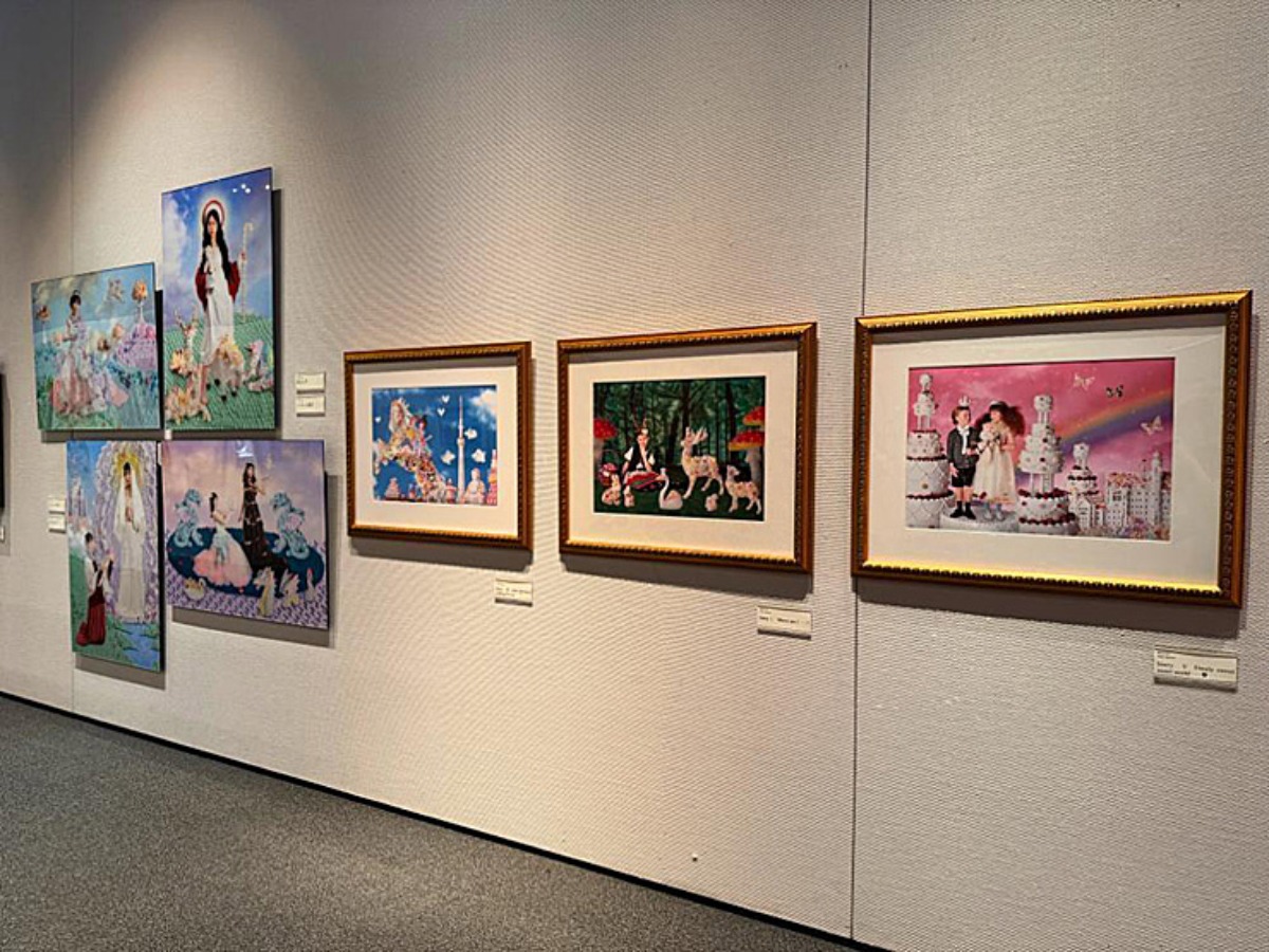 渡辺先生が衣装や背景を制作し、神話や童話に出てくる当時上人物をモデルさんが演じた写真作品が展示されています。