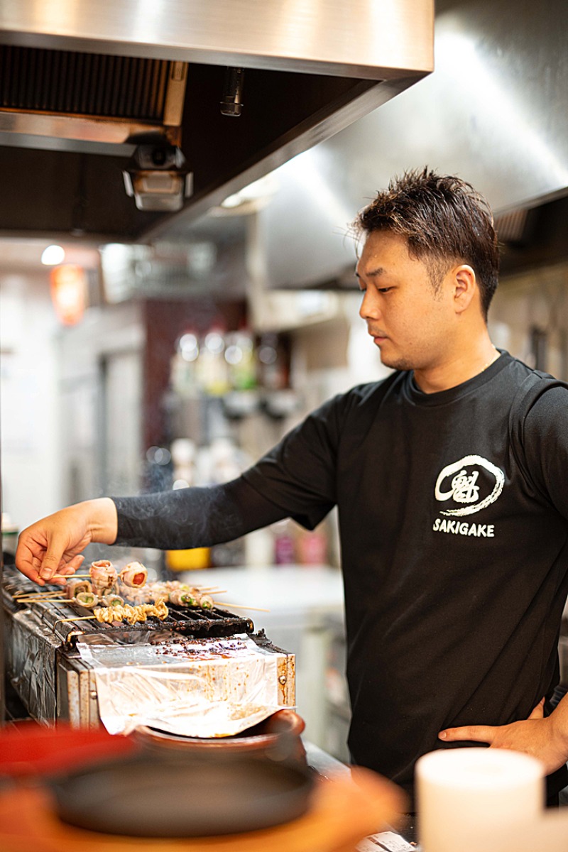 熟練の技で一本一本丁寧に焼き上げる。ベストな焼き時間で肉と野菜の旨みを最大限に引き出す