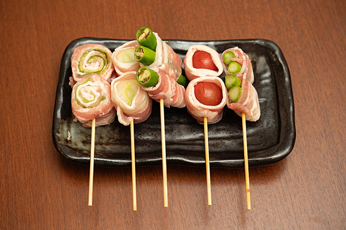 国産の豚バラ肉で新鮮な野菜を巻いた、ボリューム満点で栄養バランスも良い人気メニュー