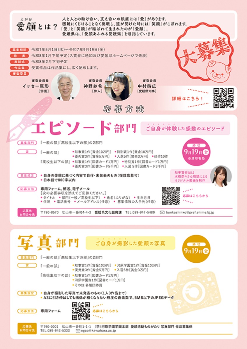 さらに、エピソード部門の知事賞作品は、愛媛県出身の人気声優・水樹奈々さんによる朗読オリジナル映像として制作される特典も♪