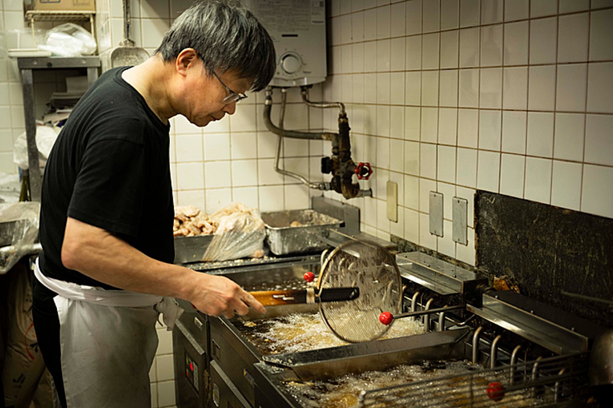 3台のフライヤーを駆使し、絶妙な揚げ加減を実現。カリッと香ばしい衣がたまらない