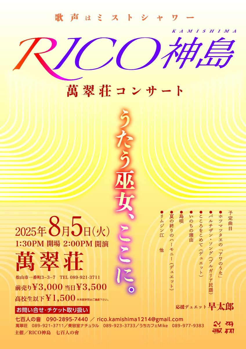 RICO神島 萬翠荘コンサートの情報