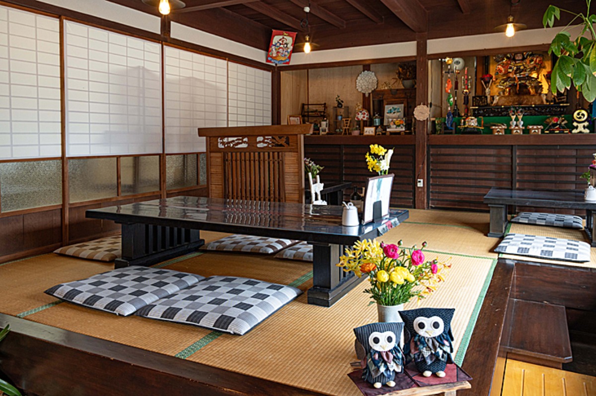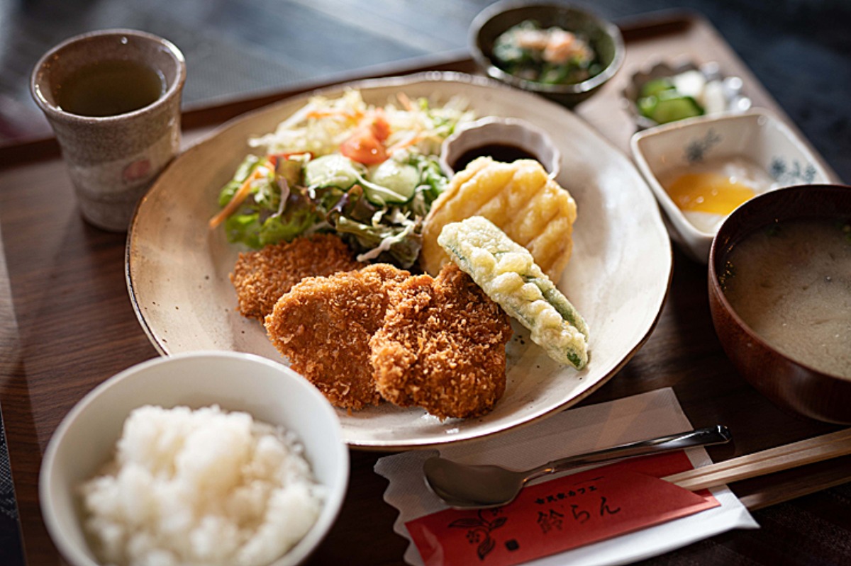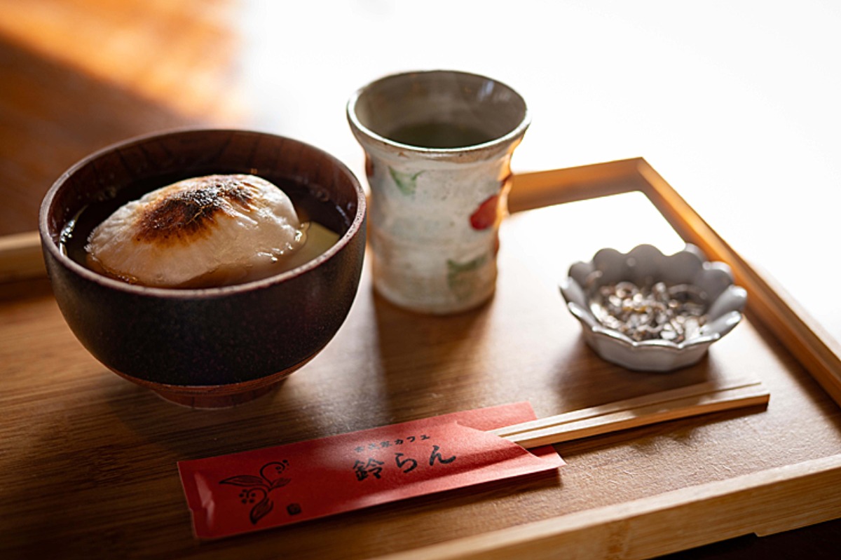 築100年を越える古民家を改装したカフェ「鈴らん」。古くは漬物屋だったという家は間口も広く、土間をそのまま利用した趣ある作りで、小上がりの座敷は子連れにも安心。