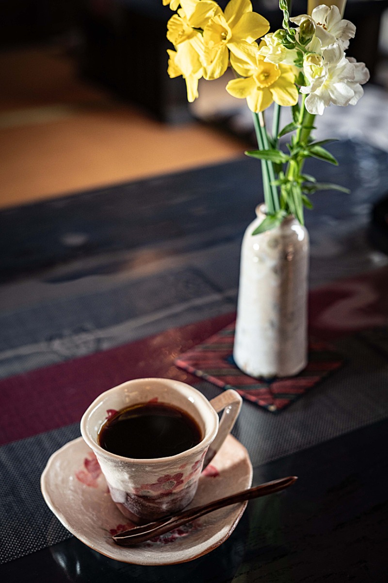 サイフォンで丁寧に淹れるコーヒー。店内に香りがふわりと広がる
