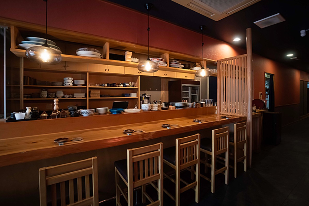 入口すぐのカウンター席からは囲炉裏も見え、調理の様子を見て楽しむことができる