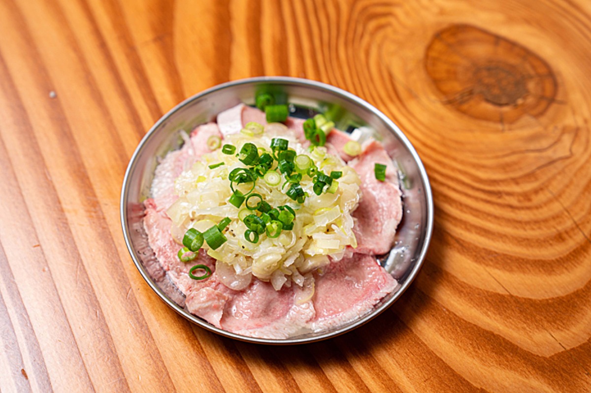 新鮮な豚を使用しており、歯応え抜群。自家製のタレで和えたネギと一緒に召し上がれ