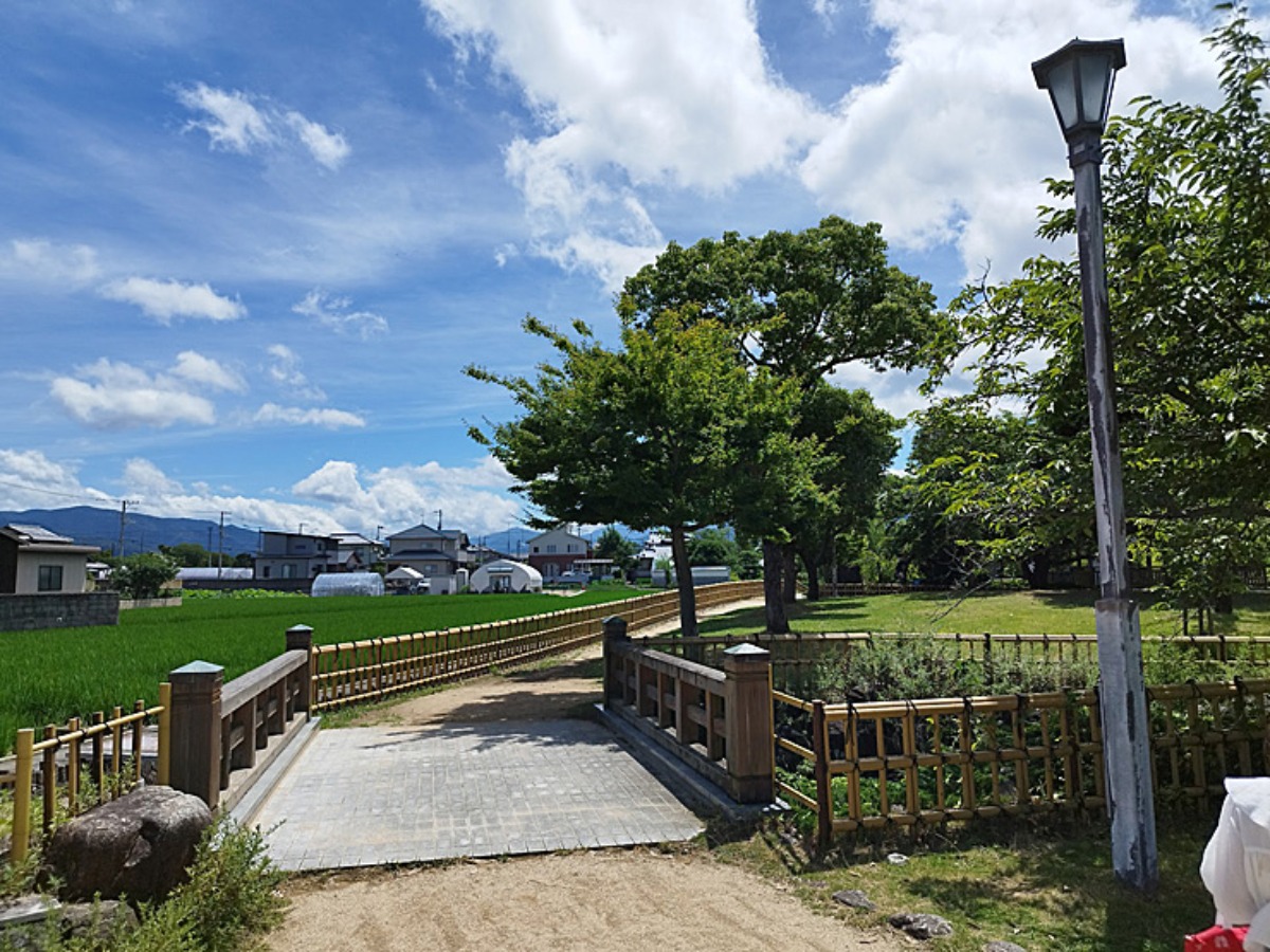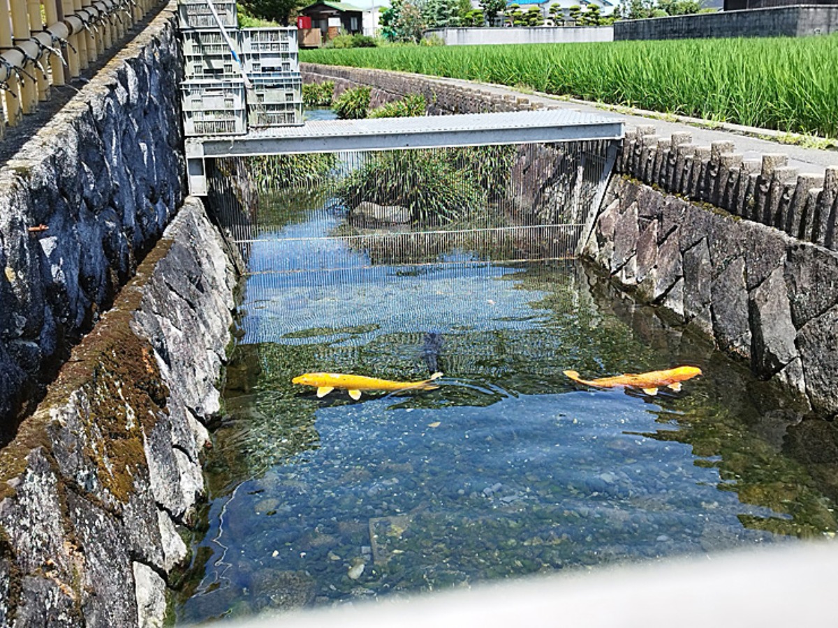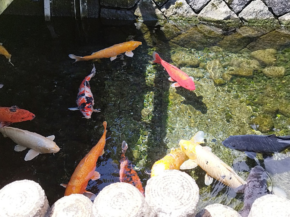 園内をぐるりと囲むように造られた川には鯉の姿も。