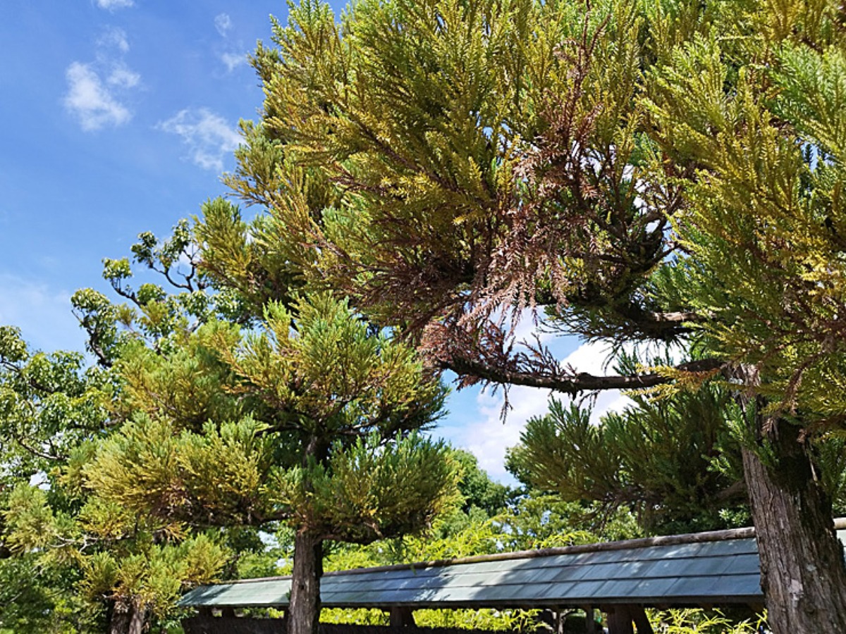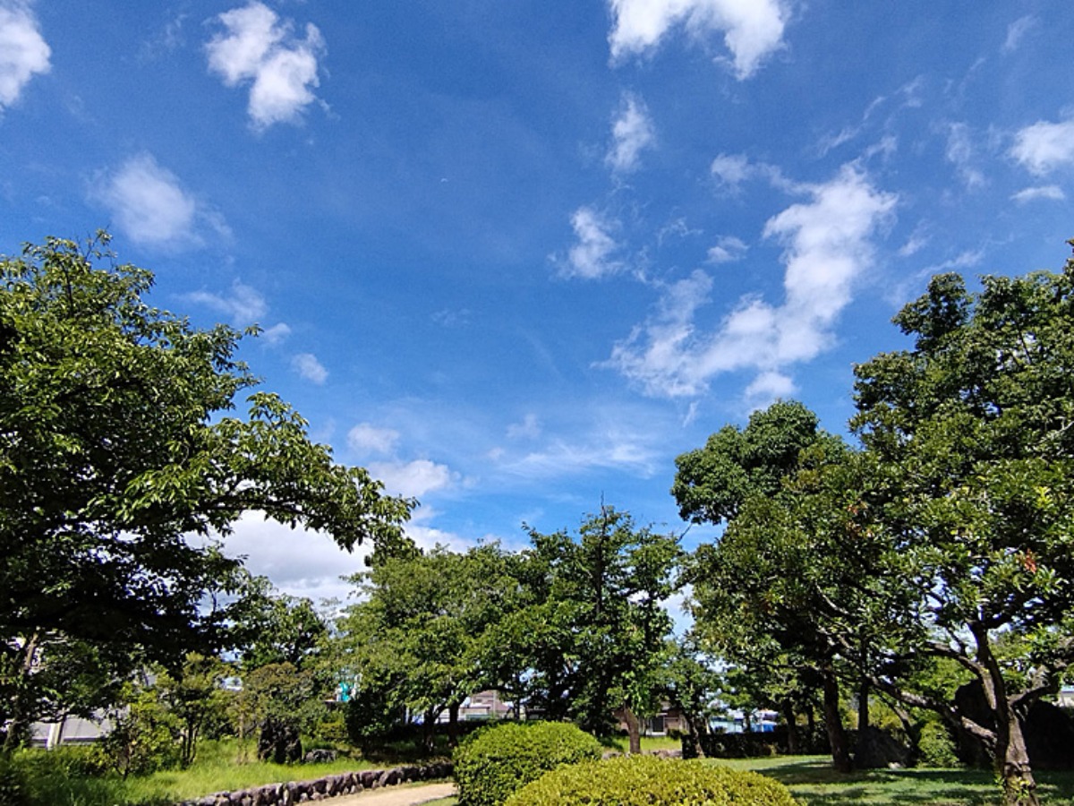 青空を背景に、鮮やかな緑がより一層引き立ちますね。