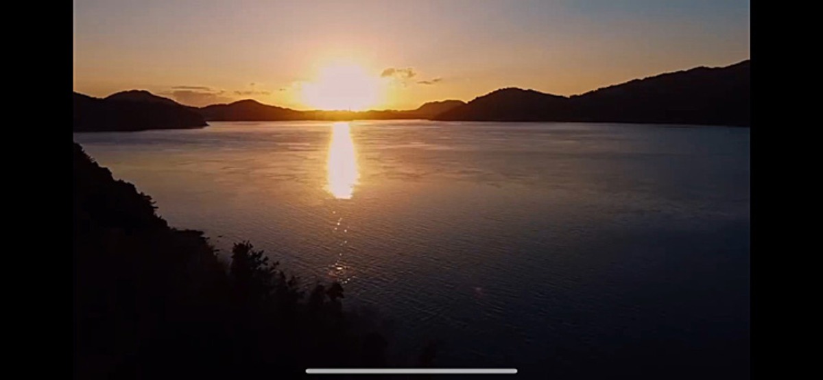 朝は、海の向こうからゆっくりと昇ってくる朝日。