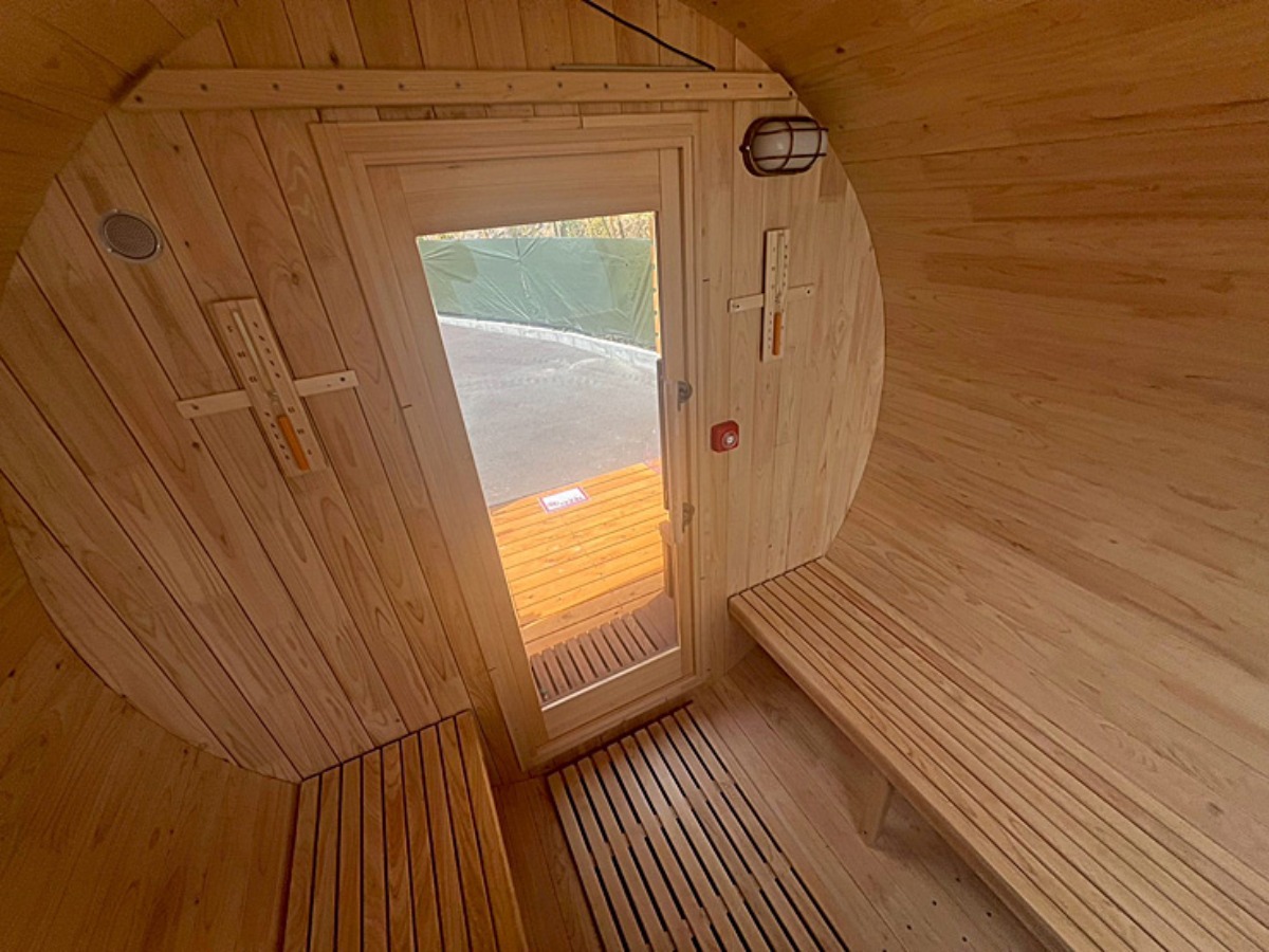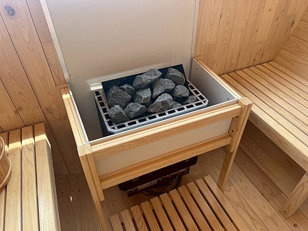 ヒノキの香りに包まれる、木のぬくもりたっぷりのサウナ。