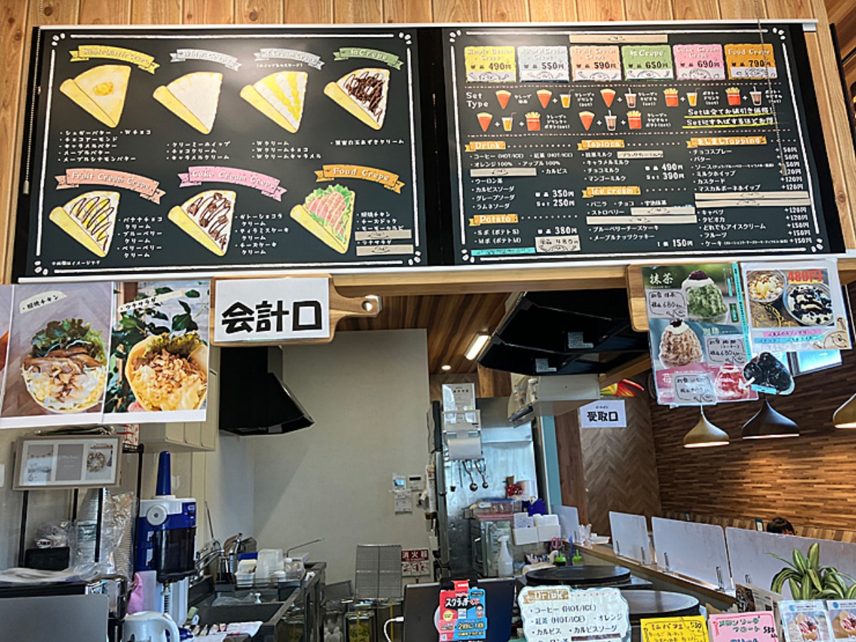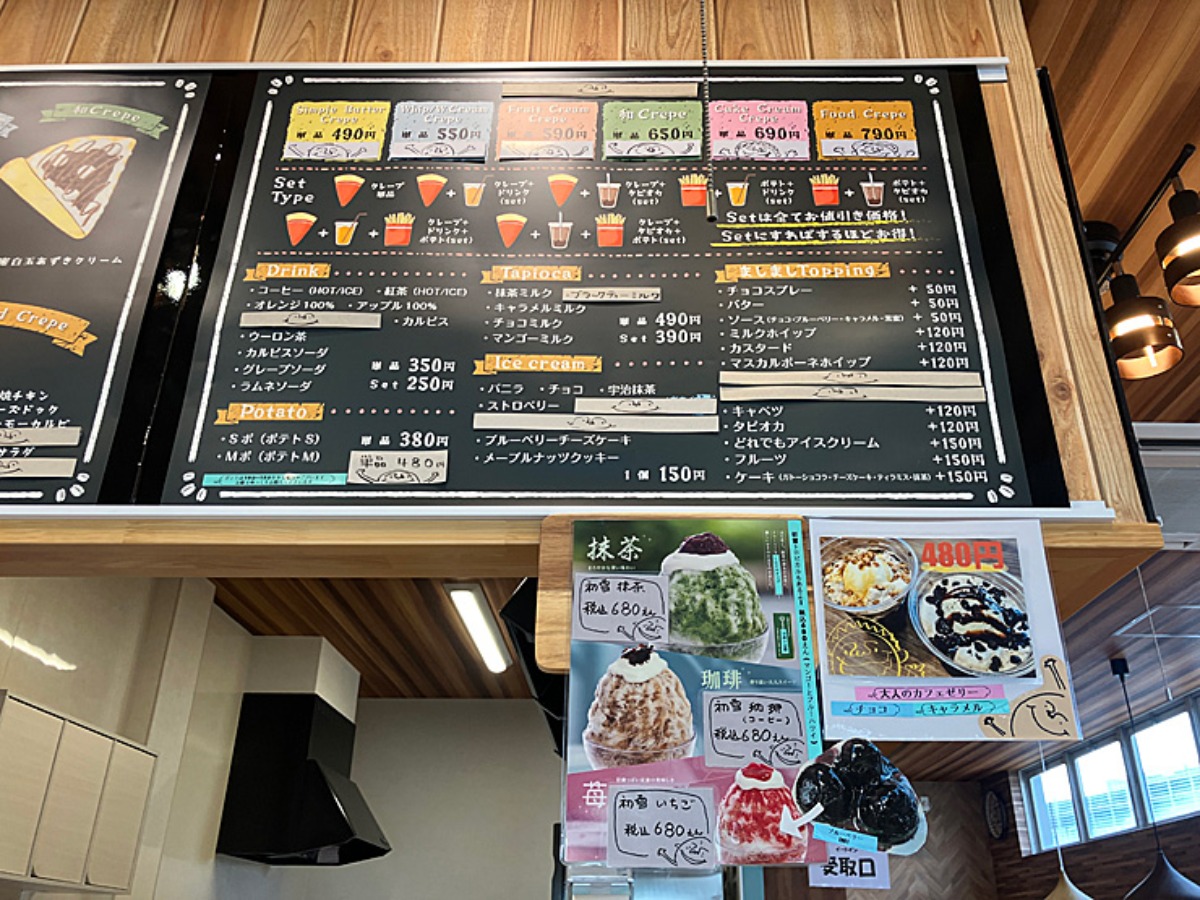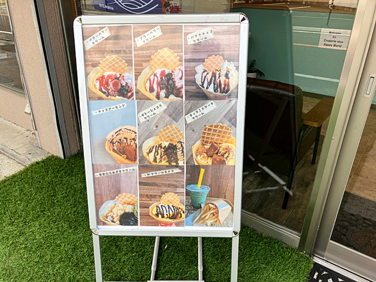 店舗前にクレープのメニュー。