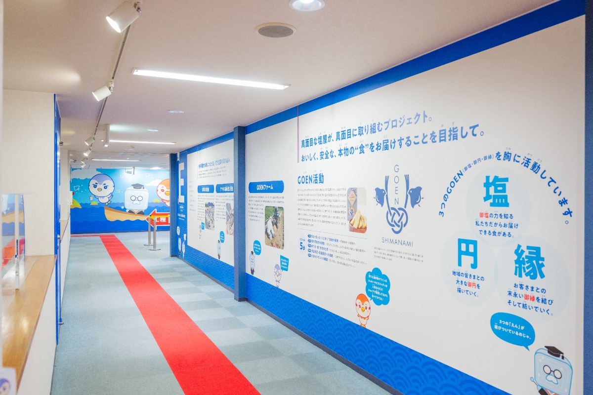 今年の5月にリニューアルした見学通路は伯方の塩ができるまでの工程や、塩にまつわる不思議を楽しく学べる解説パネルが壁一面に設置され、より分かりやすく塩のことを学習できるようになりました!