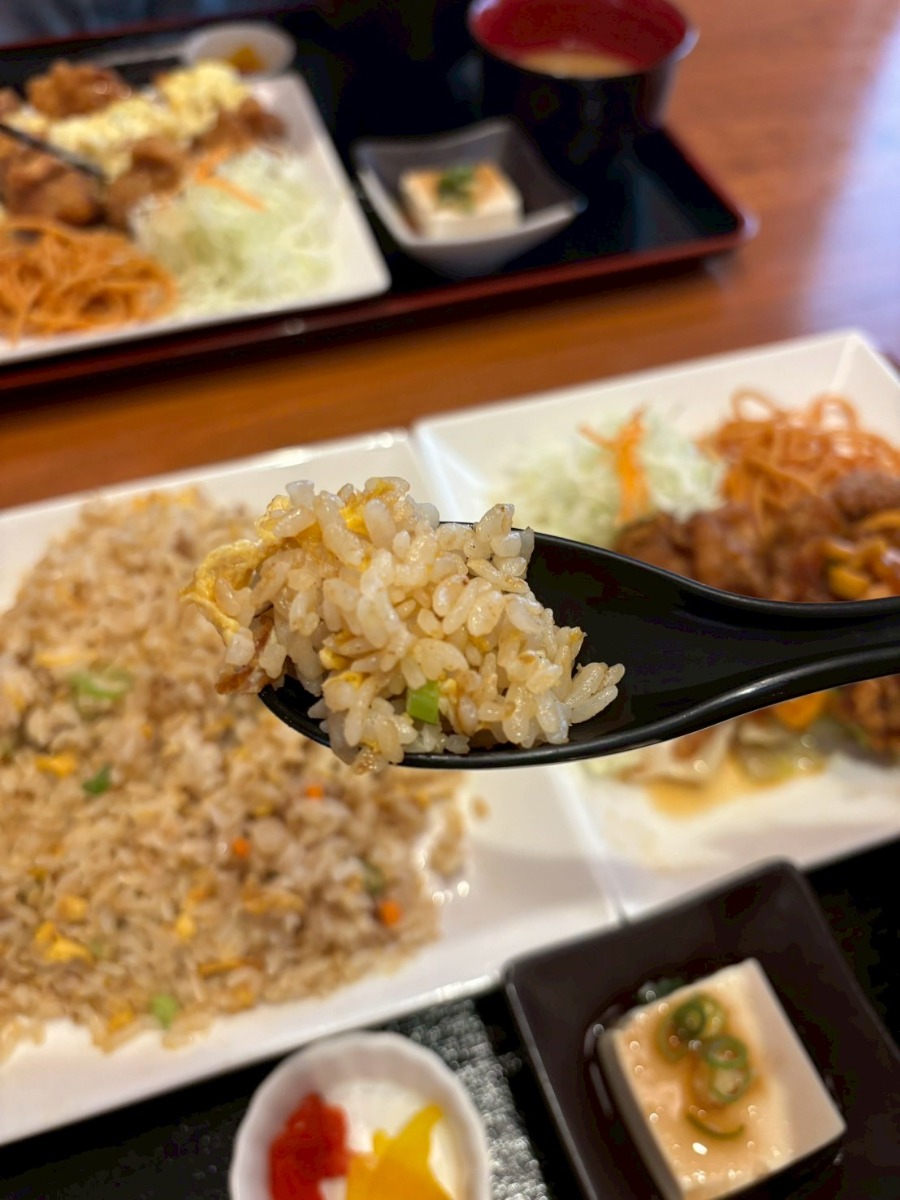 定食メニューに+300円すると、半炒飯に変更することができます!