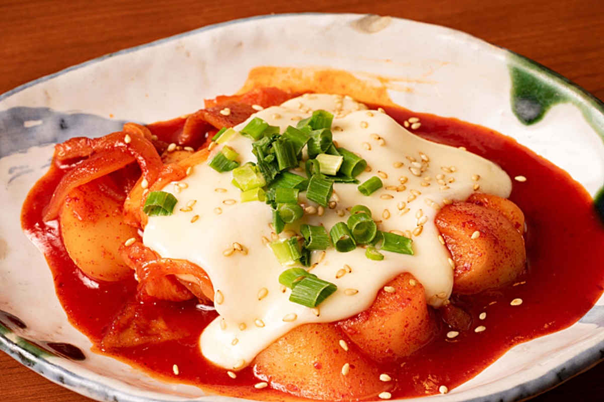 韓国の餅を甘辛く煮込んだ「チーズトッポギ」(638円)。