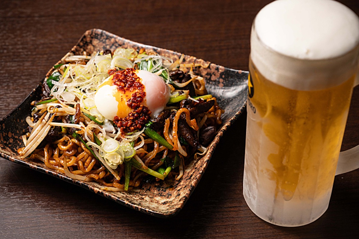 「甘辛味噌もつ焼きそば」はランチセット1,100円、単品750円