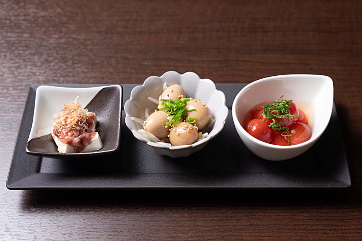 お酒のアテに最高な今宵の酒菜メニューから、好きなものを3種チョイスできる