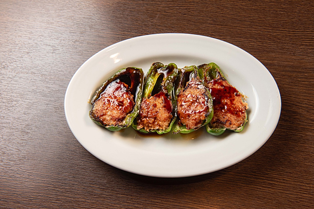 鉄板で押し当てて焼き上げた一品。ピーマンのシャキシャキ感と挽き肉のジューシーさが楽しめる