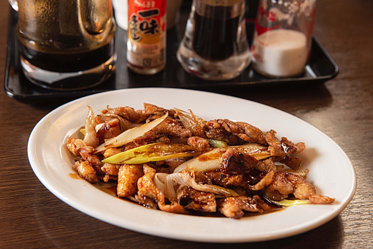 鉄板で焼く今治名物のとり皮に、ネギを加えた看板メニュー。創業当時からのリピーターも多い