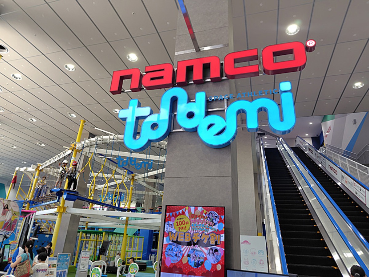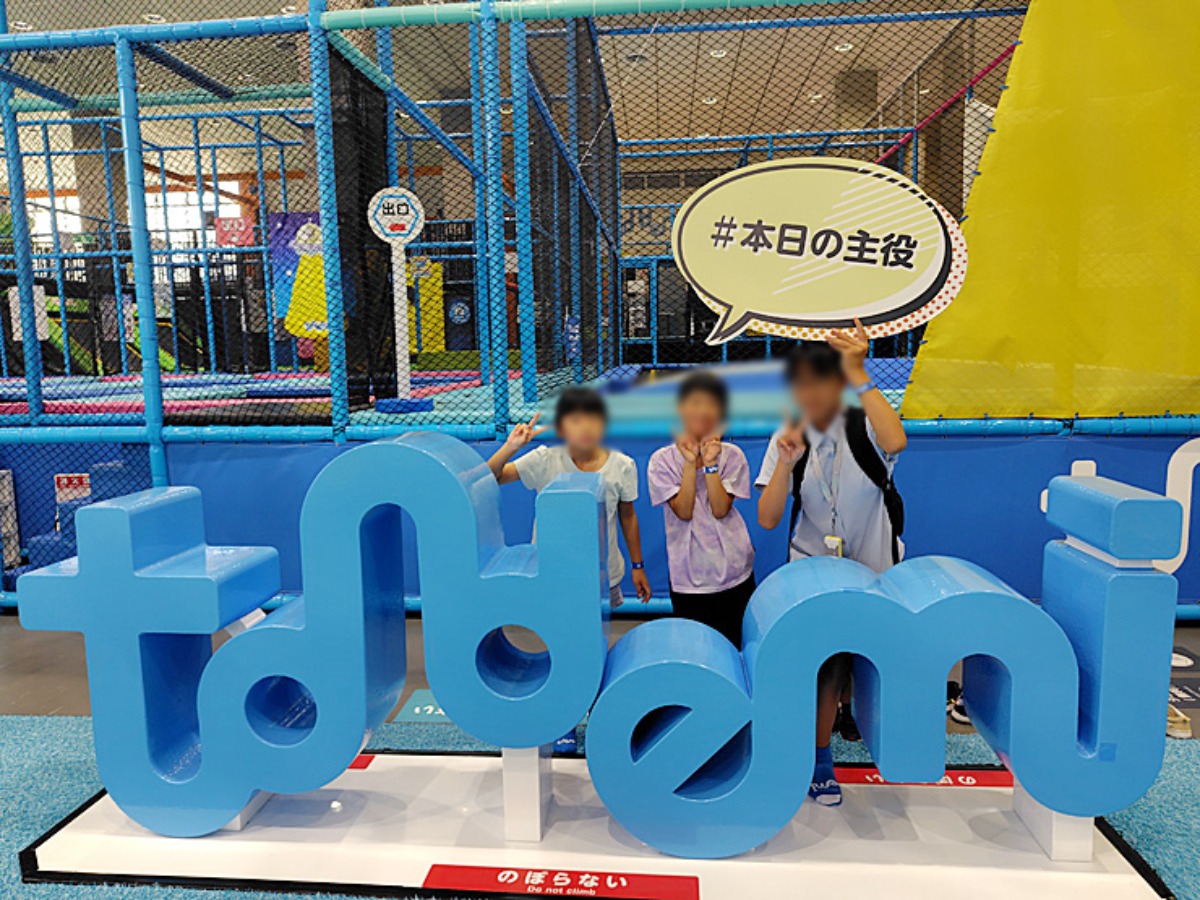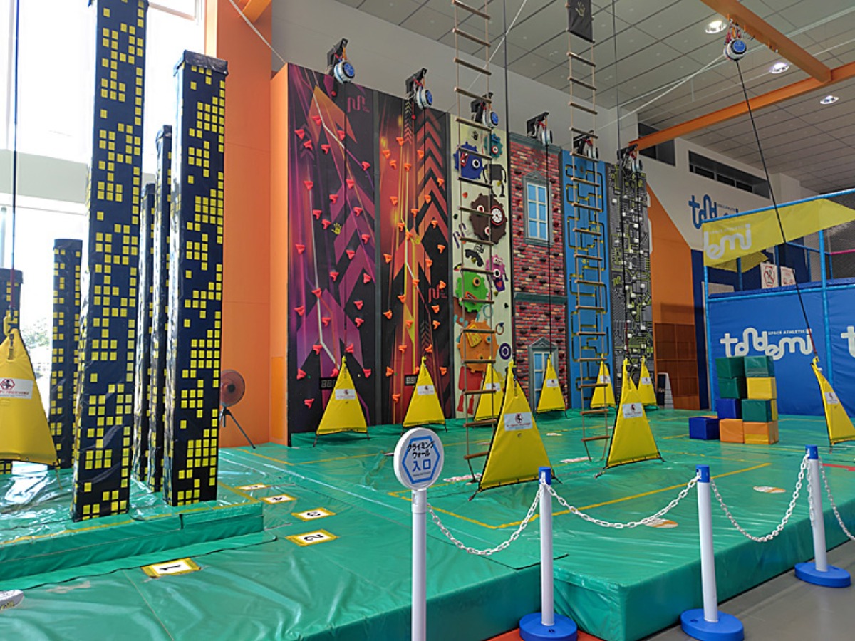 トンデミは、大型商業施設エミフルMASAKIにある、クライミングウォールやトランポリンなどで身体を目いっぱい動かして遊べる屋内アスレチック施設。