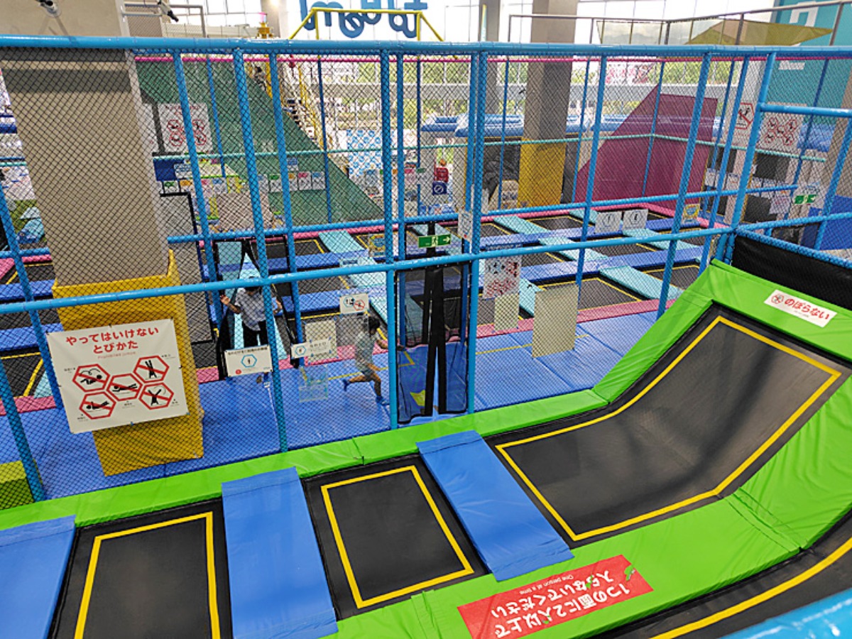 そして施設の中心にある、広大なトランポリンコーナは、なんと全42面、約140坪という中四国地区最大級の規模だそう。