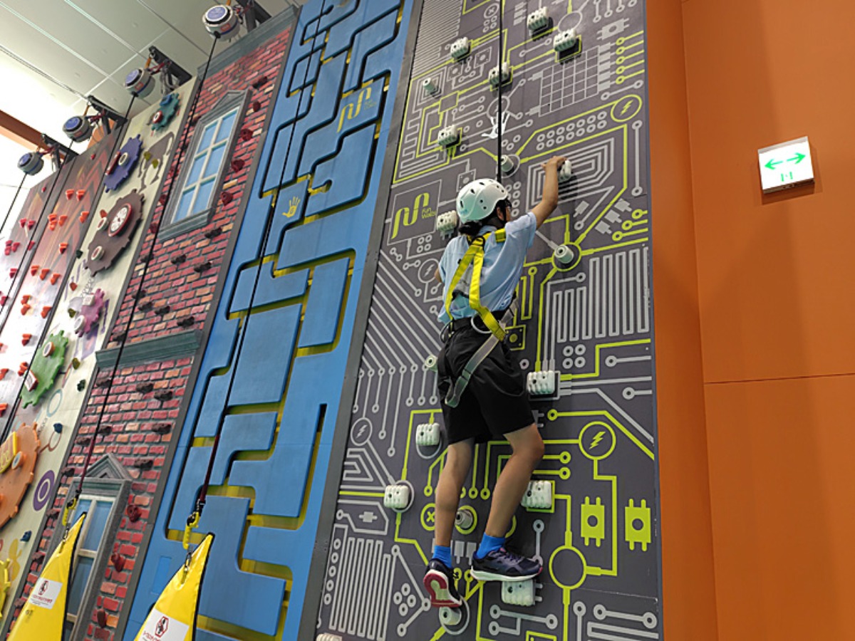 90分の時間制なので、上の子が挑戦したがっていたクライミングウォールエリアへ移動。