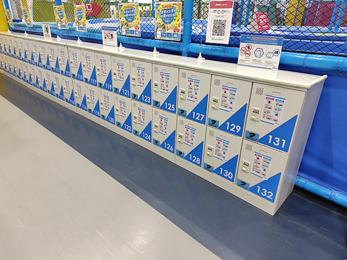 無料ロッカー、更衣室(2階)完備。靴の無料貸し出しもあります。