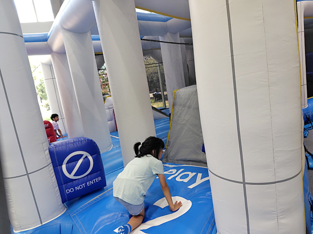 ここは全長36mのコース内にエアーでできた障害物が設置されている、いわば障害物競争のコーナー。